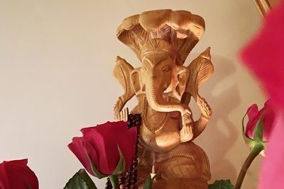 Сегодня мы отмечаем пятый день рождения нашей Шалы. Совершенно случайно сегодня день рождения празднует и Ганеша — в этом году он выпал на 22 августа. Два года назад мы, тоже случайно, назначили день свадьбы на день рождения Ганеши, а вскоре у меня дома появилось это чудесное мурти. Судя по всему, он за нами присматривает, и сегодняшний праздник спонтанно превращается в Ганеша-пуджу — чествование нашей исконной способности иметь достаточно силы и сочувствия, чтобы помогать другим.